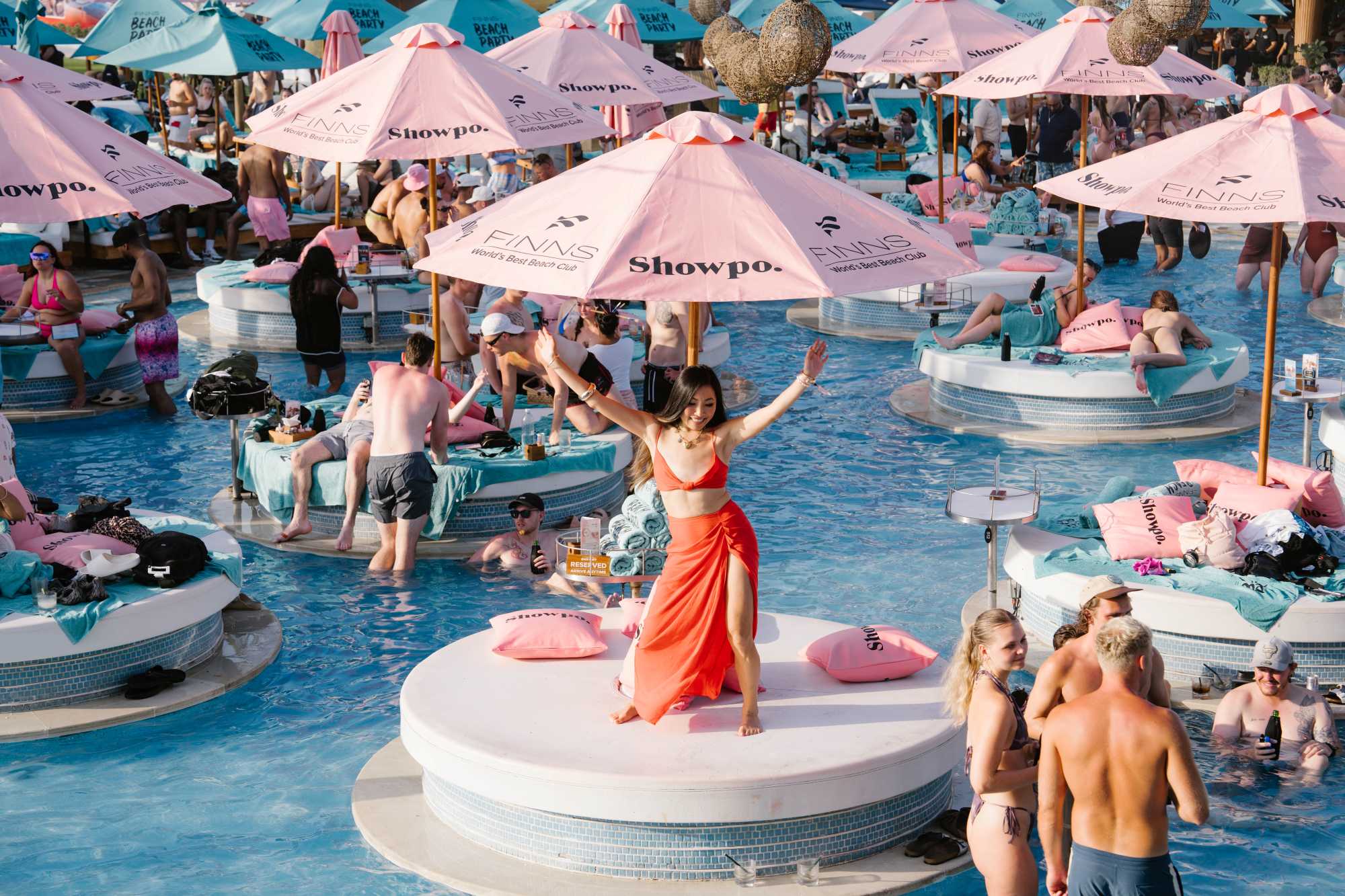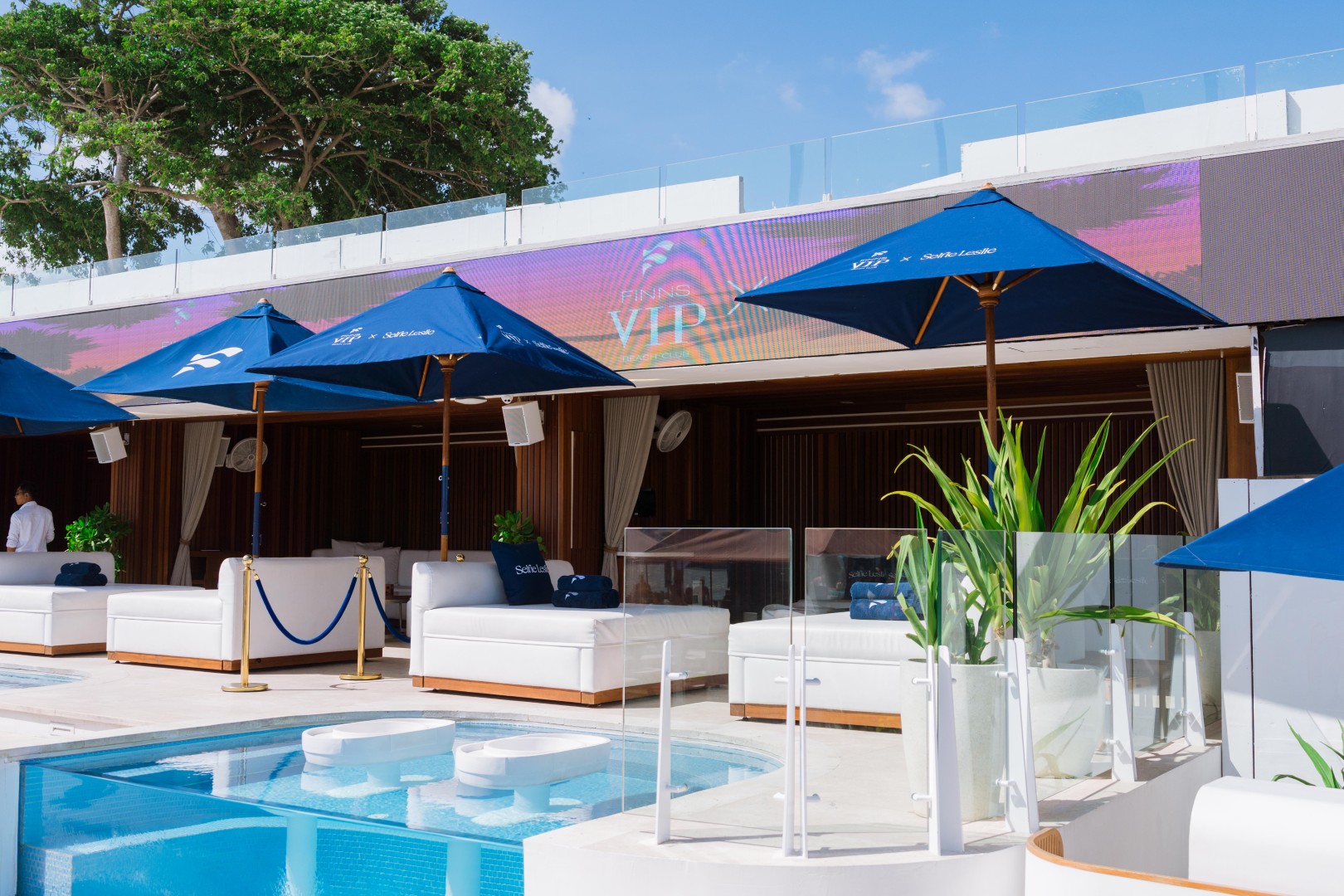 We hosted Selfie Leslie’s brand trip at FINNS VIP, transforming our VIP cabana with rebranded umbrellas, custom pillows, branded LED screens, mirror stickers, and other unique details. Influencers from Australia and local talent captured the space’s allure, highlighting Selfie Leslie’s signature style and flair, along with FINNS’ iconic party vibe.