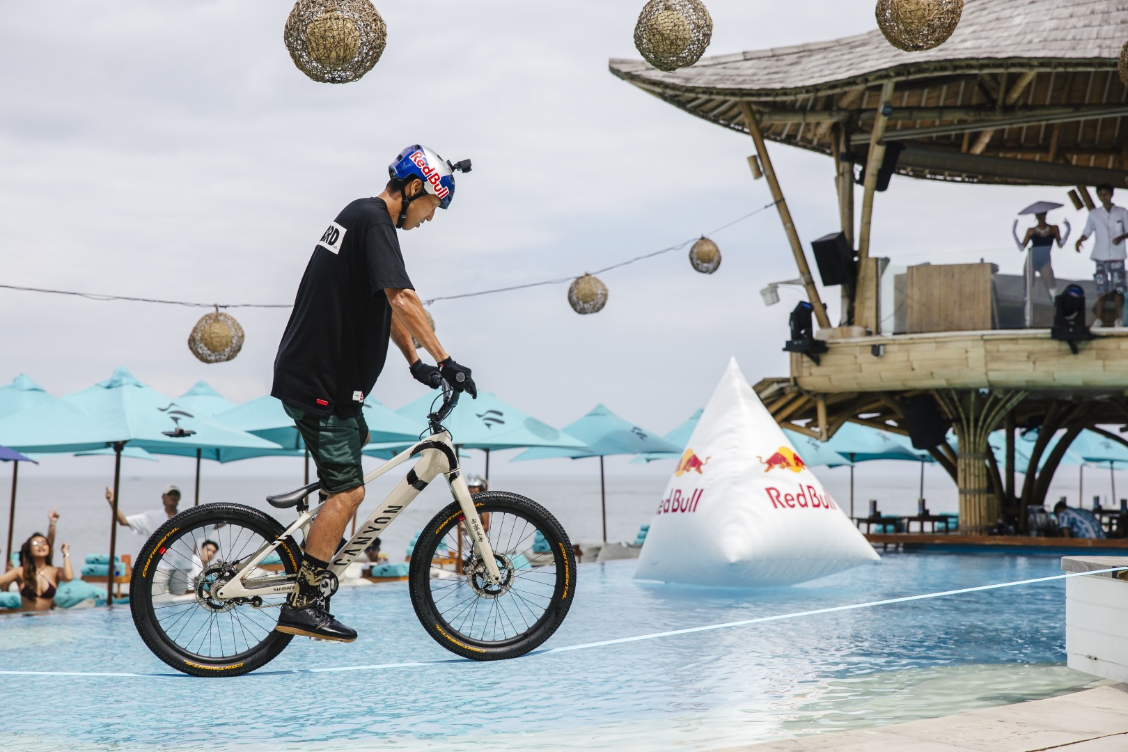 Former two-time Japanese Trail Champion @TomomiNishikubo takes his bike where no one ever has — right into the heart of FINNS Beach Club, Bali’s ultimate party destination.